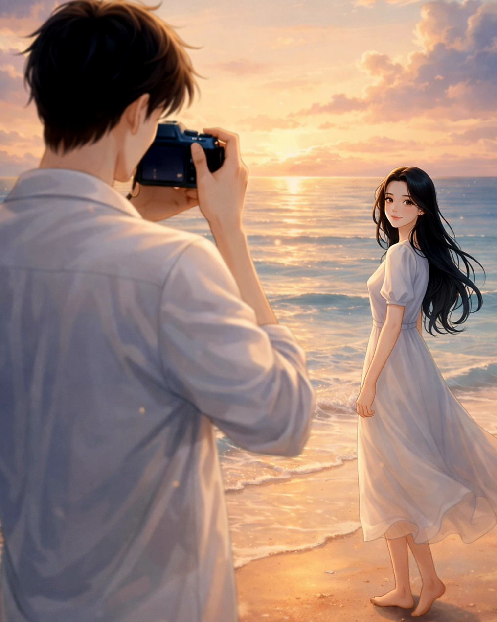 Seo-jun didn’t believe in fate. As a photographer, he believed only in timing, light, and patience. That evening, he came to the beach with no plan—just his camera and a heart tired of the city. The sun was sinking slowly into the ocean, painting the sky in soft gold and pale pink.